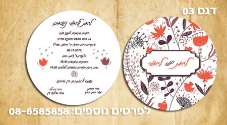 עיצוב הזמנות לחתונה זולות / הדפסת הזמנות מיוחדות במחיר אטרקטיבי 08-6585858